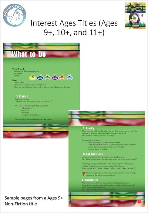 Children work in small independent groups of up to six, each taking turns to be the leader as they read and discuss a book together. Clear prompts show the leader how to focus the discussion and engage their team members to predict outcomes, clarify issues, ask questions and evaluate content.