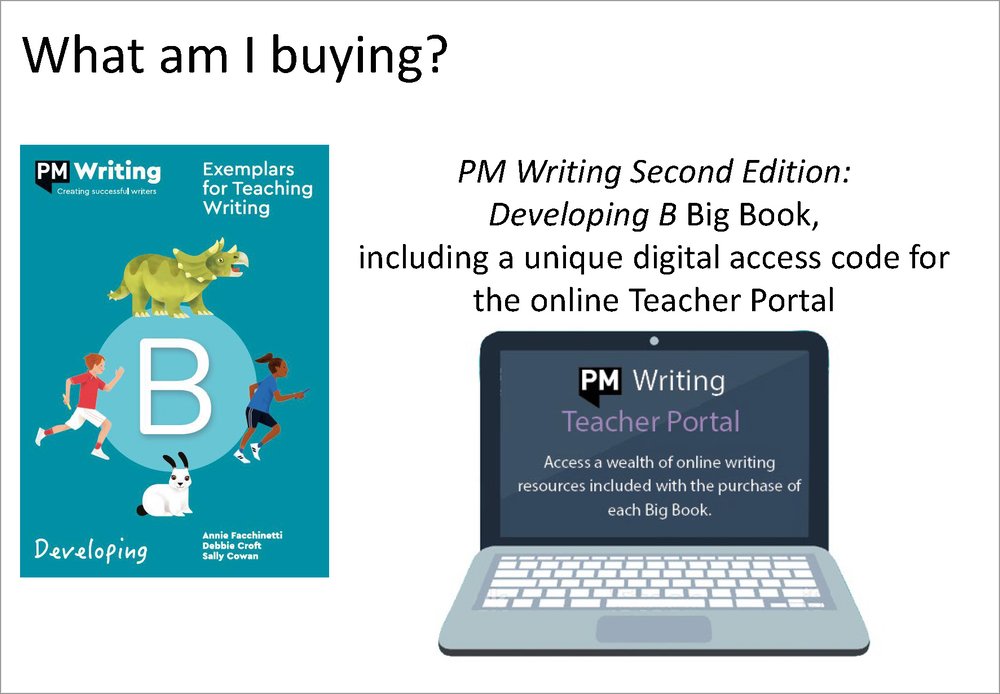 - Access the PM Writing Teacher Portal for Developing B texts with the unique code on the inside front cover.