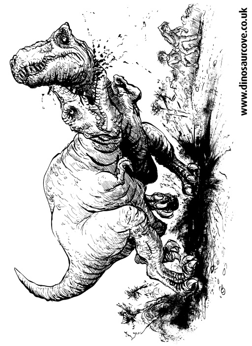 Here’s a pair of battling tyrannosaurs from the Dinosaur Cove series to colour in.