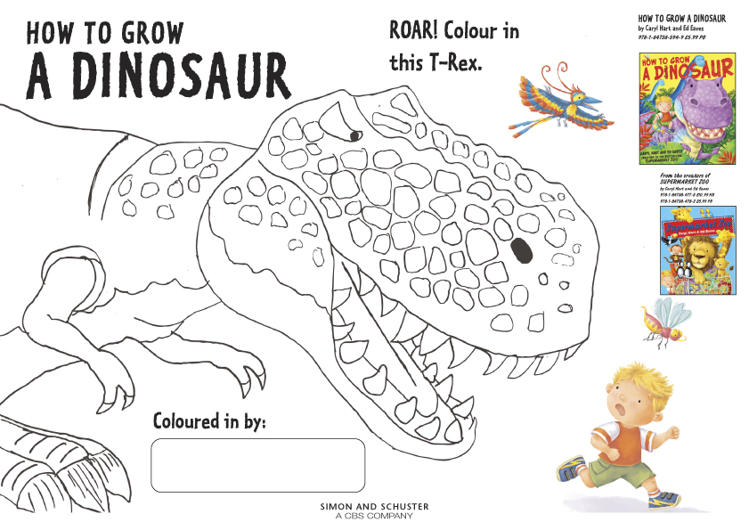 Colour this roaring T-Rex from How to Grow a Dinosaur.