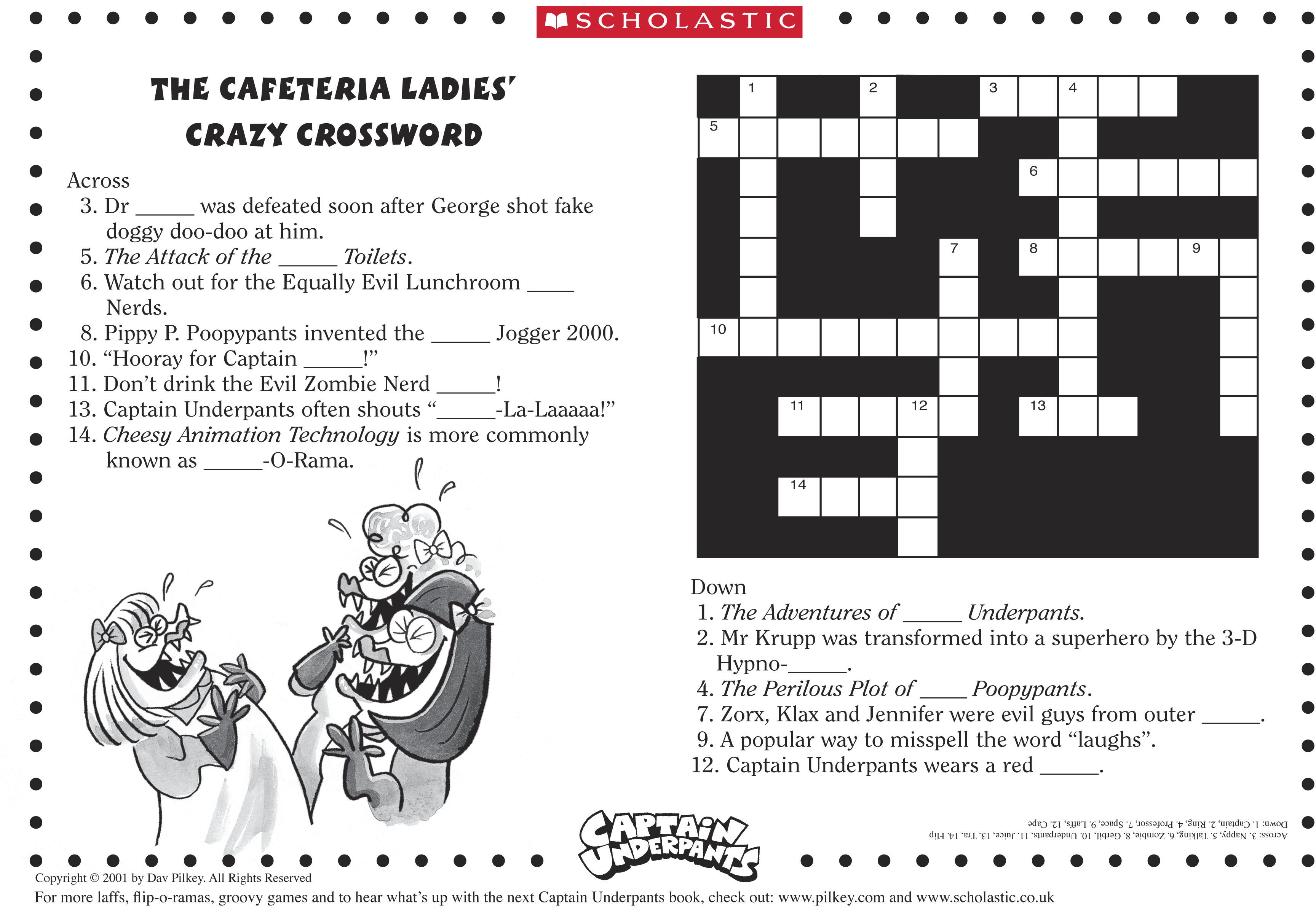 Captain Underpants Cafeteria Crossword