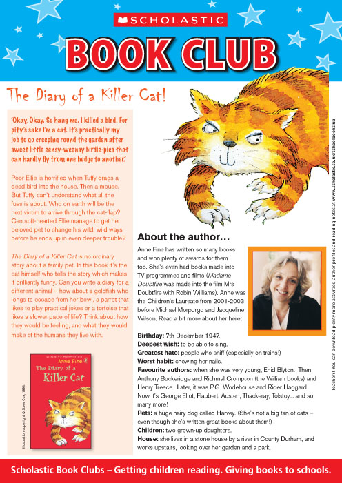 An introduction to Diary of a Killer Cat, and profile of author Anne Fine.