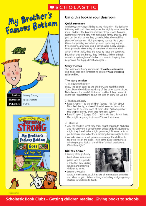 My Brother's Famous Bottom Goes Camping Teachers' Resource